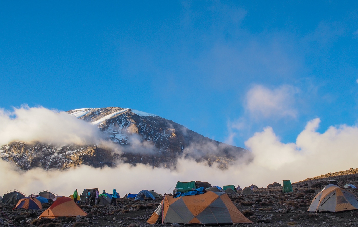 Spend a short time on the summit taking photographs before starting the descent back to Barafu Camp, which takes about 3 hours. Arrive at Barafu Camp, take a short rest (1-2 hours), then continue descending to Mweka Camp for dinner and overnight.