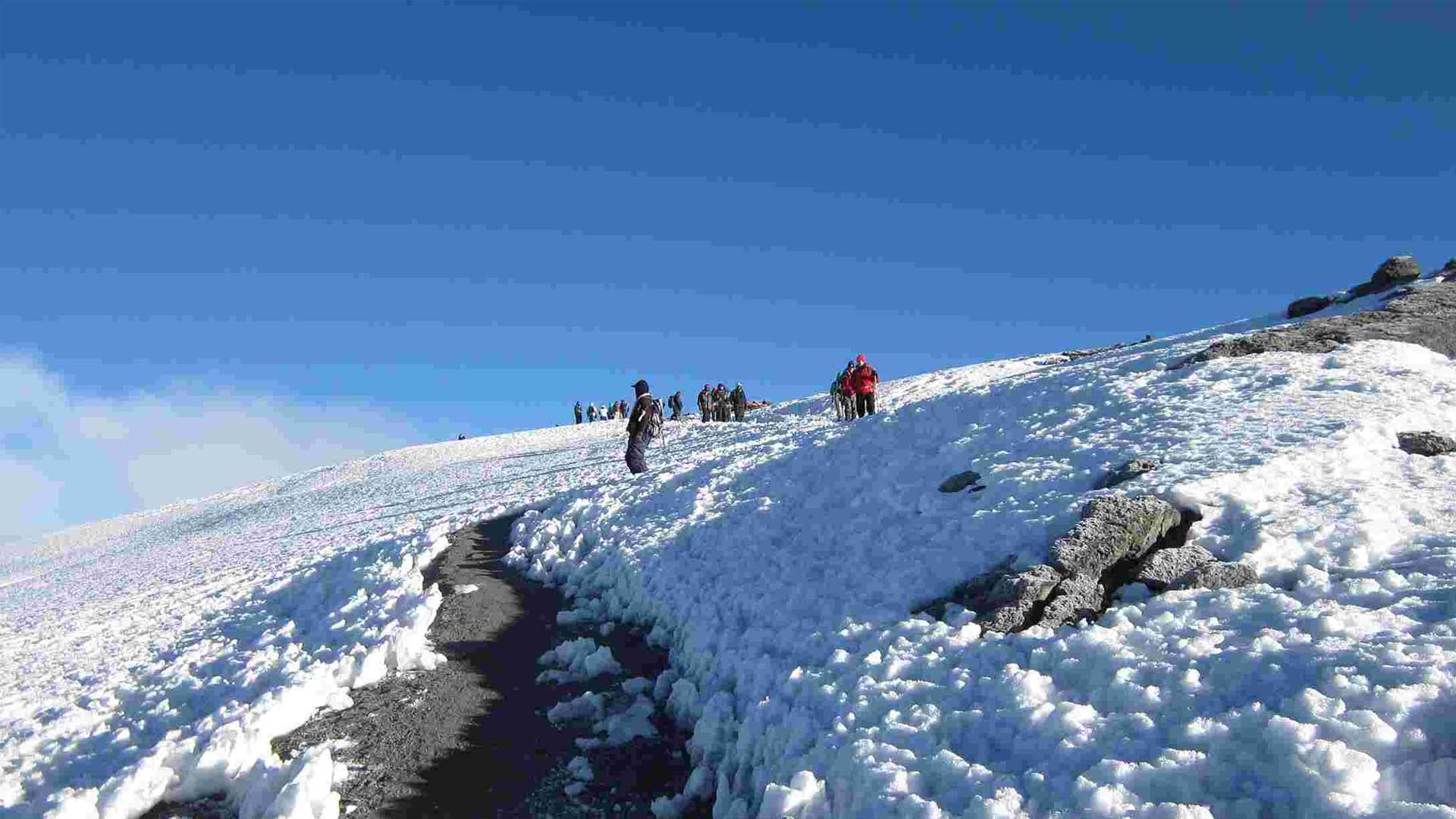 On a relatively easy path, today’s leg takes you over the Kibo Saddle. A lack of vegetation is characteristic for the landscape here as only a few types of grass and other plant species can survive in this dry area and thin air. Just before today’s destination is reached, one last rock passage has to be conquered. Finally arrive at the Kibo Hut, relax and mentally prepare for the midnight summit stage.